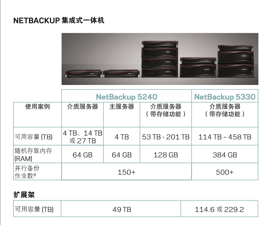 VERITAS NETBACKUP 集成式一体机家族现包含下面两个系列: